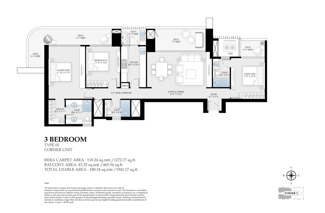 Apartment options include 3 BHK residences ranging from 2300 sq ft, 4 BHK homes from 2700 sq ft, and expansive 4 BHK with servant room up to 3000 sq ft, designed for large families. Located in Sector 63A, Gurugram, the project enjoys excellent connectivity to major business hubs, schools, and lifestyle destinations.